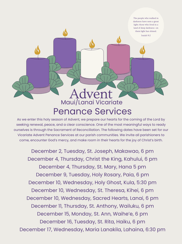 Please review these recent updates from St Anthony Church, the Maui/Lanai Vicariate,