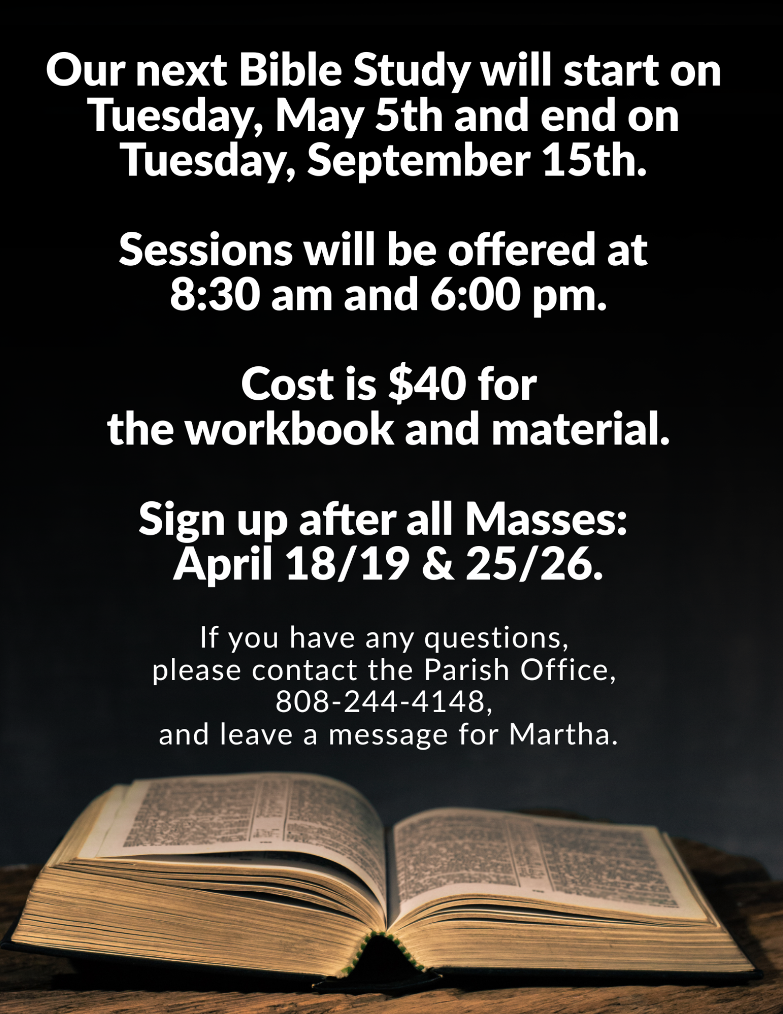 For a calendar of our upcoming Masses, please visit the Calendar page.