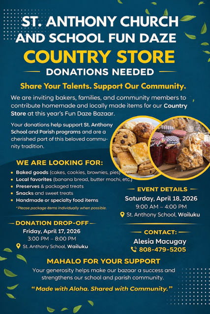 Please review these recent updates from St Anthony Church, the Maui/Lanai Vicariate,
