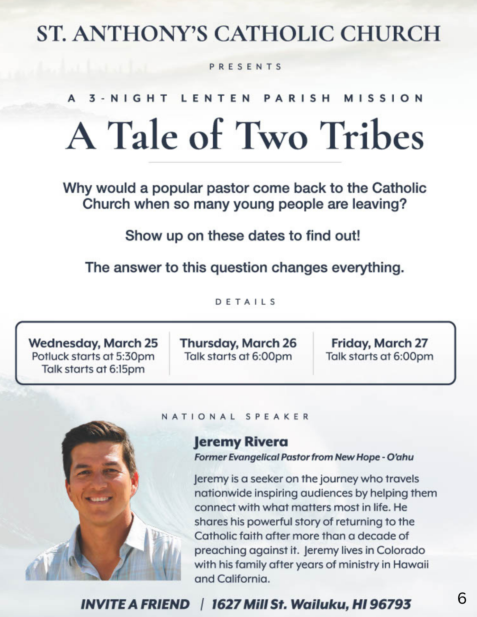 A message from Jeremy Rivera, soon to speak at our Lenten parish mission from March 25-27